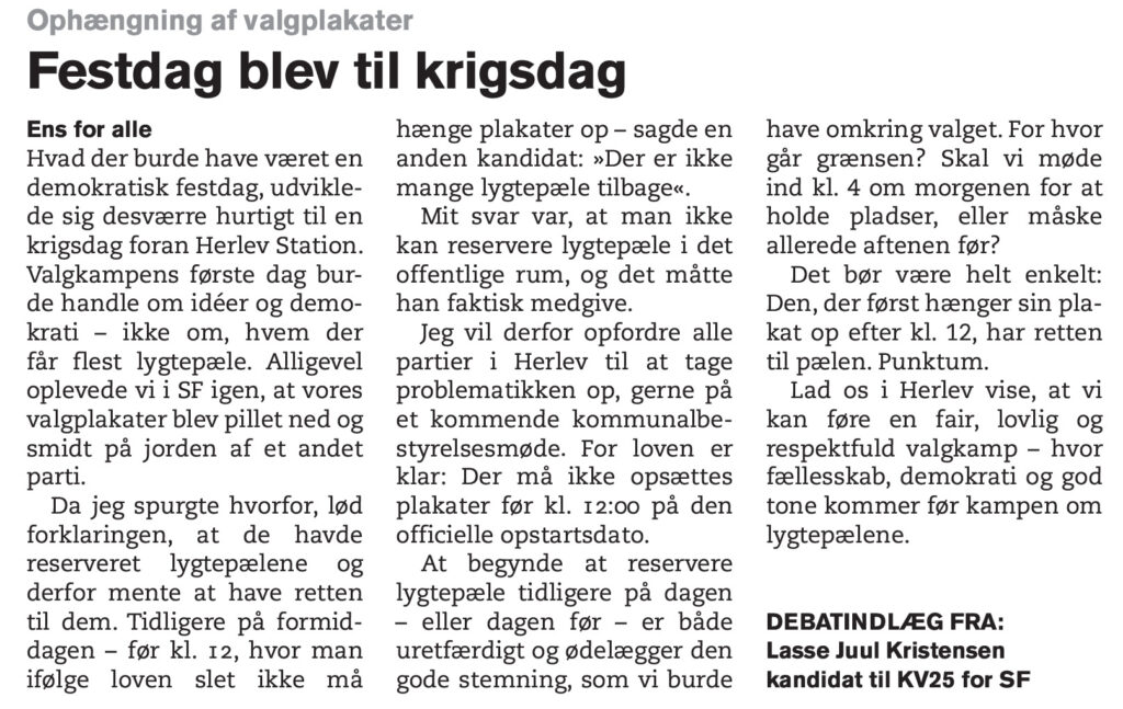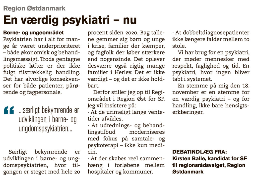 Desværre hører jeg fra tid til anden om en langsommelighed i visitationen af ældre mennesker til kommunens plejehjemspladser. Det kan vi simpelthen ikke være bekendt og er helt uacceptabel i en velfærdskommune som Herlev. I Herlev har vi en målsætning om, at ældre medborgere skal have hjælp til at blive længst muligt i et hjem.… Læs mere: Bekymrende langsommelig anvisning af plejehjemsplads