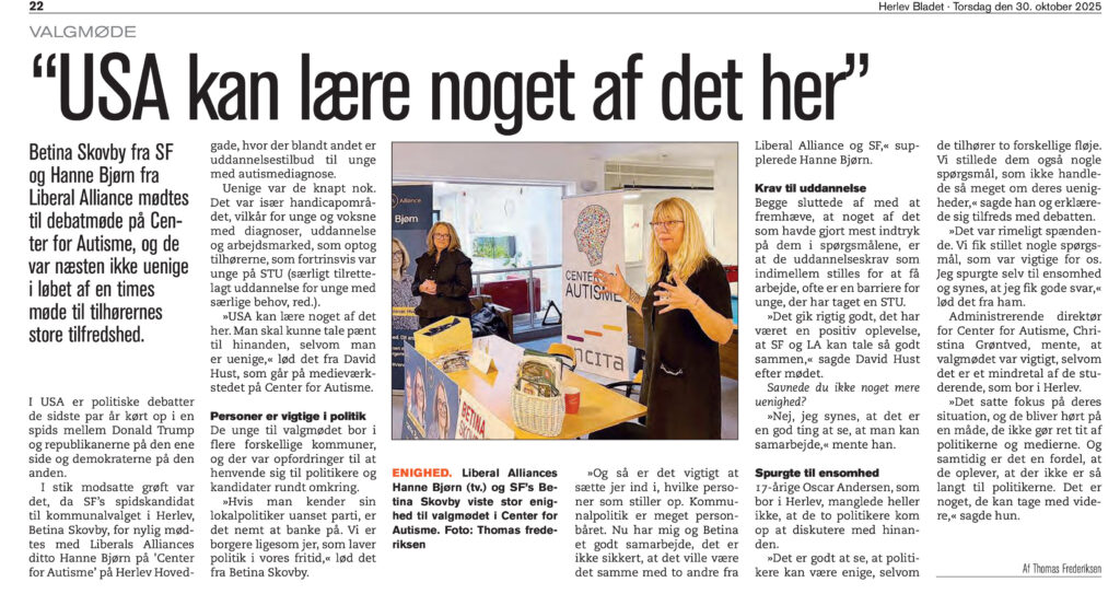 Det er en god aftale om udviklingen af ældreområdet i Herlev, som partierne i kommunalbestyrelsen er blevet enig om. Fordi de ældre borgere i højere grad kommer til at opleve et mere fast og kendt personale, som hjælper den enkelte borger. Målet er, at borgerne får større indflydelse på hjælpen og styrker muligheden for at… Læs mere: Mere selvbestemmelse for den ældre i hjemmeplejen